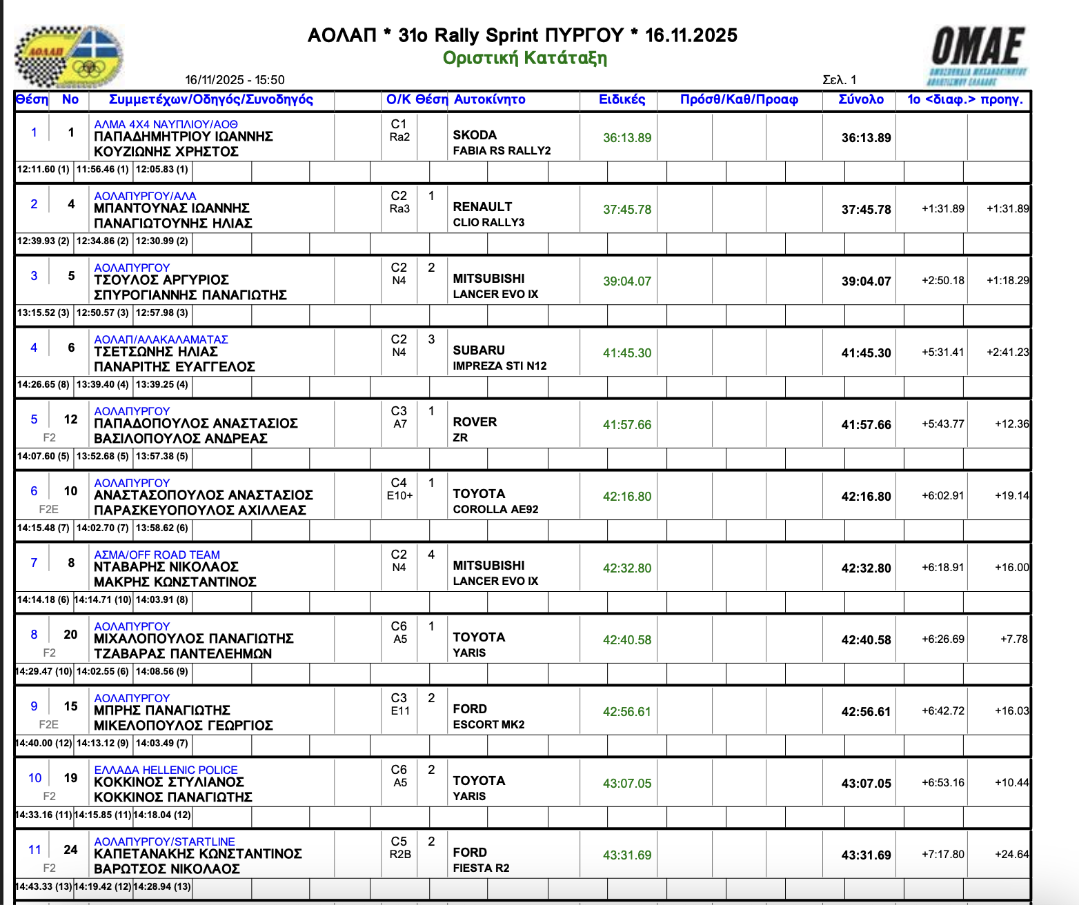 Κύπελλο Ράλλυ Χώματος 2025- 5. Ράλλυ Σπριντ Πύργου- review- Τη νίκη ο Παπαδημητρίου- Τους βαθμούς ο Μπαντούνας- Το κύπελλο ο Παπαχριστόπουλος!