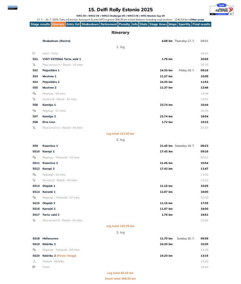 Στο μικρότερο κράτος που φιλοξενεί στο έδαφος του ειδικές του WRC τα τελευταία χρόνια, διεξάγεται το τριήμερο 18-20 Ιουλίου ο 8ος αγώνας του Παγκοσμίου Πρωταθλήματος Ράλλυ για το 2025. Με πληθυσμό μικρότερο του 1,5 εκατομμυρίου ανθρώπων, αλλά με λατρεία των Εσθονών για το σπορ, με εν ενεργεία Παγκόσμιο Πρωταθλητή (Ott Tanak), οδηγό που άφησε το στίγμα του στο θεσμό (Markko Martin) και αρκετούς συμμετέχοντες στο WRC2 (Virves, Linnamae, Jurgenson) η Εσθονία διεκδικεί μόνιμη θέση στο πρόγραμμα.