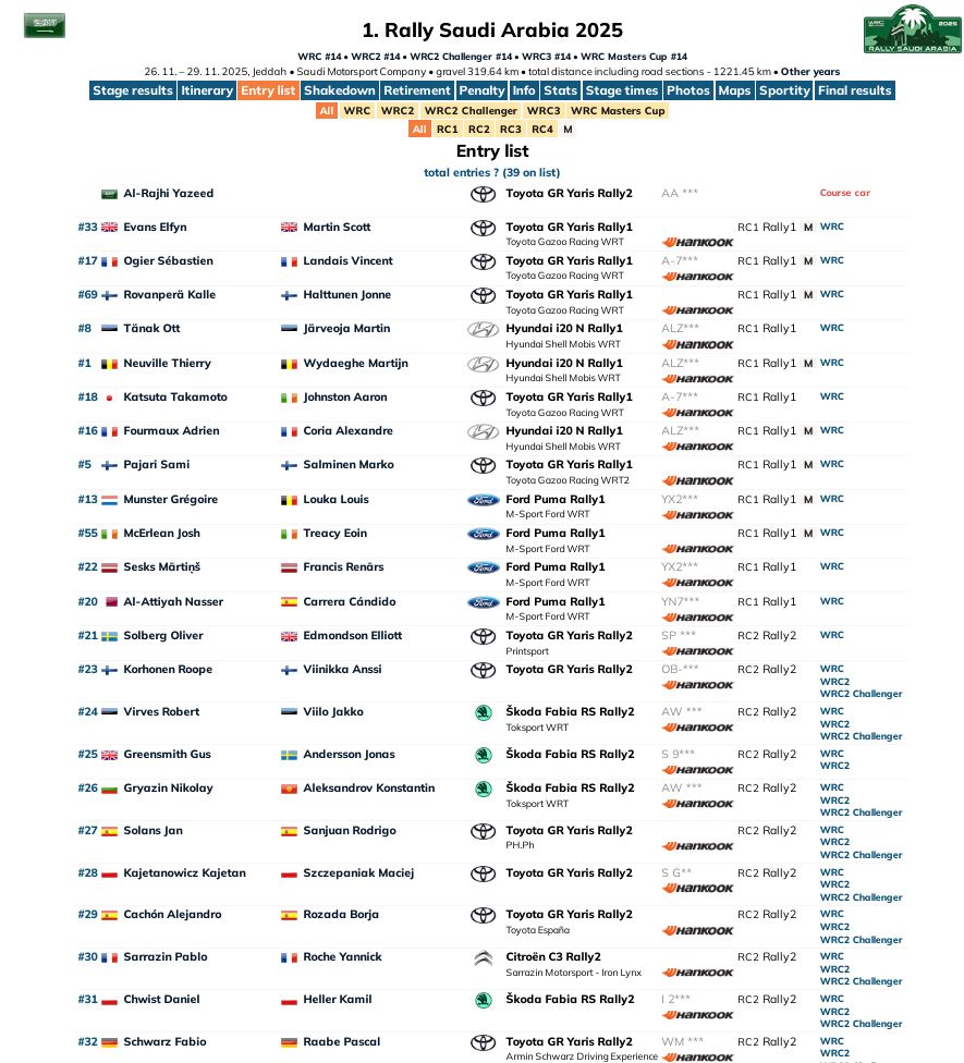Την έκπληξη δεν την περιμένουμε από τους «βασικούς» οδηγούς της ομάδας Greg Munster και Josh McErlean, αλλά από τον σπεσιαλίστα της ερήμου Nasser Al Attiyah που επιστρέφει στο WRC με στόχο το βάθρο της Σαουδικής Αραβίας. Το τέταρτο Puma θα οδηγεί ο Martins Sesks με το βλέμμα στο 2026 και την επιδίωξη περισσότερων εμφανίσεων στη μεγάλη κατηγορία.