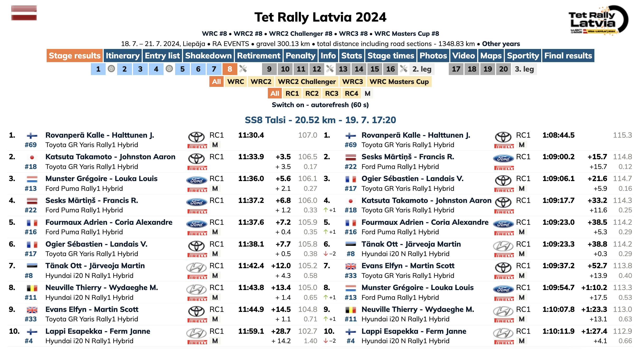 Ημέρα για σπεσιαλίστες η πρώτη του Ράλλυ Λετονίας, με οδηγούς που έμαθαν να οδηγούν στις ειδικές της χώρας να εντυπωσιάζουν. Οι Kalle Rovanpera (Toyota Yaris Rally1), Martins Sesks (Ford Puma Rally1) και Oliver Solberg (Skoda Fabia RS Rally2) έχουν ξεχωρίσει, με τον πρώτο και τον τρίτο να έχουν διαλύσει τον ανταγωνισμό, ενώ τον δεύτερο να έχει κερδίσει τις εντυπώσεις. Βλέπετε οι τρεις τους συμμετέχουν από τα 16 τους στο Λετονικό πρωτάθλημα, με αποτέλεσμα να έχουν τεράστια εξοικείωση με τις ειδικές της χώρας, που οι περισσότεροι αντίπαλοι τους αντικρύζουν για πρώτη φορά!